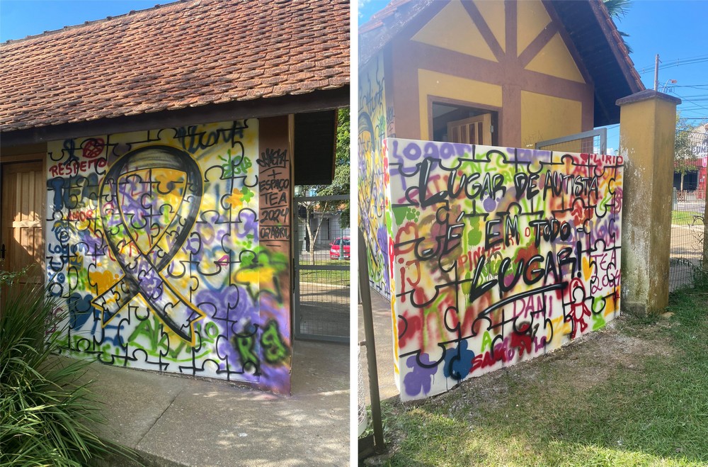As artes são alusivas ao autismo e foram criadas pelo artista local Dion Luis Hable de Oliveira (popularmente conhecido como “Moska”), contando com a participação de todos os presentes.