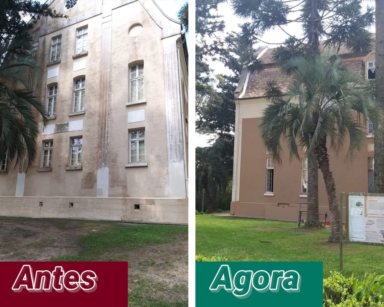 O prédio do antigo Seminário, onde atualmente é a prefeitura de Rio Negro-PR, já está recebendo uma nova pintura. A fotomontagem abaixo mostra o antes e depois.