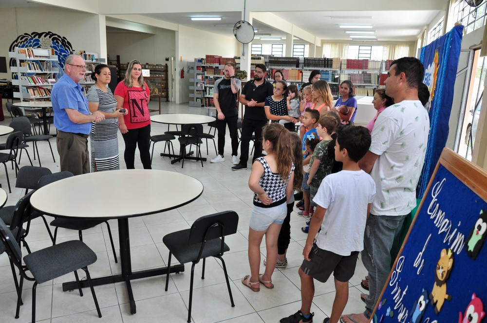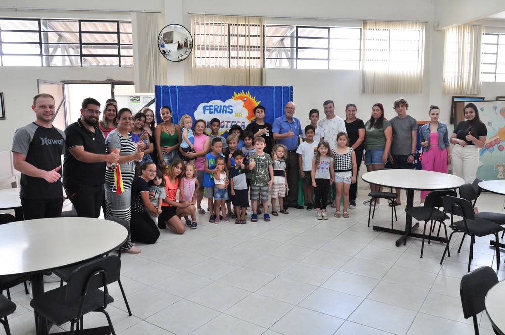 Na tarde desta segunda-feira, o prefeito James Karson Valério e a secretária de cultura e turismo, Jussara do Rocio Heide, recepcionaram crianças e pais que estão participando do projeto Férias na Biblioteca. Várias atividades serão realizadas na Biblioteca Pública Professor Venceslau Muniz de forma gratuita, entre elas o campeonato de xadrez.
