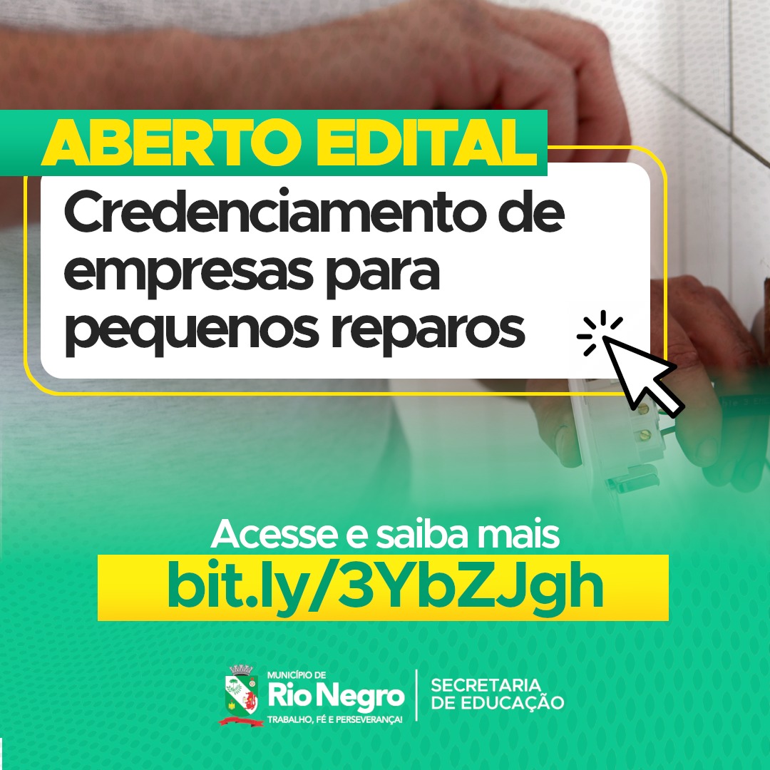 A Prefeitura de Rio Negro abriu o edital de credenciamento destinado a quem deseja prestar serviços na área de construção civil. A iniciativa tem o objetivo de fomentar o comércio local caracterizado por inviabilidade de competição e permitindo o maior número de contratados, em igualdade de condições, sem exclusão entre eles atendendo ao interesse público tutelado pela administração na promoção do comércio local e garantir mão de obra qualificada no municÃpio.