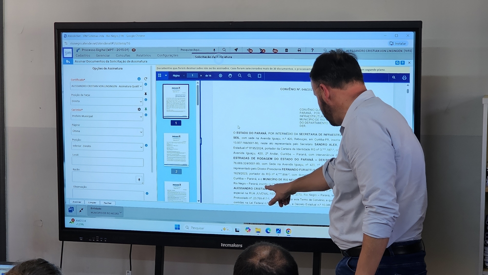 A formalização da assinatura digital do prefeito Alessandro Cristian von Linsingen ocorreu na tarde da sexta-feira na Escola Municipal Venceslau Muniz. Além do prefeito, o vice-prefeito Marcelo Wotroba e os vereadores Maria Célia Conte, João Alves e Elcio Josué Colaço também estiveram presentes no evento, juntamente com secretários municipais, servidores da Prefeitura e membros da comunidade.