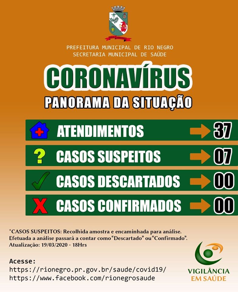 A Prefeitura de Rio Negro divulgou o panorama atualizado (dados de 19/03 Ã s 18h).