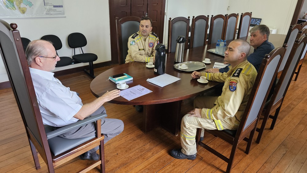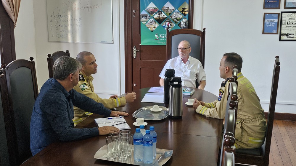 Na manhã desta quinta-feira (09), o prefeito James Karson Valério recebeu em seu gabinete, juntamente com o secretário municipal de planejamento, Edson José Guenther, a visita do Comandante do Corpo de Bombeiros de Rio Negro, 2º Tenente Ricardo Augusto Maioque Baggio e do Capitão Comandante do 2º Subgrupamento e 6º Grupamento de Bombeiros, Bruno Zirpoli de Mattos.