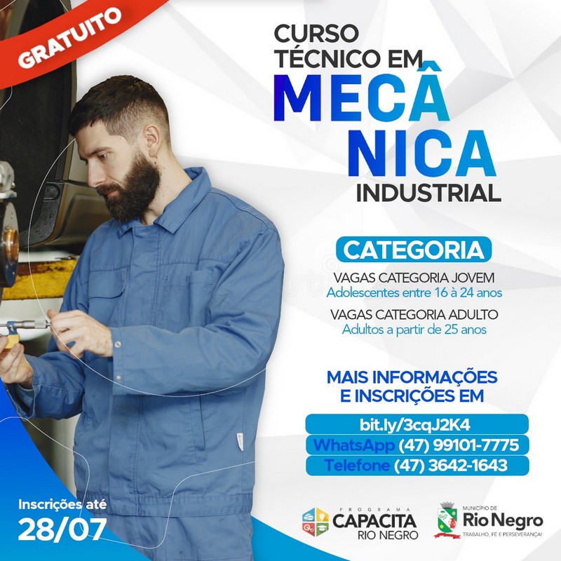 A Prefeitura de Rio Negro, através da Secretaria Municipal de Assistência Social, está lançando o Programa de Formação Técnica do município em parceria com o Senai, integrando o Programa Capacita Rio Negro. Através deste projeto inovador, a Prefeitura está disponibilizando vagas gratuitas para o Curso Técnico em Mecânica Industrial, que será realizado através da contratação de vagas do Senai.