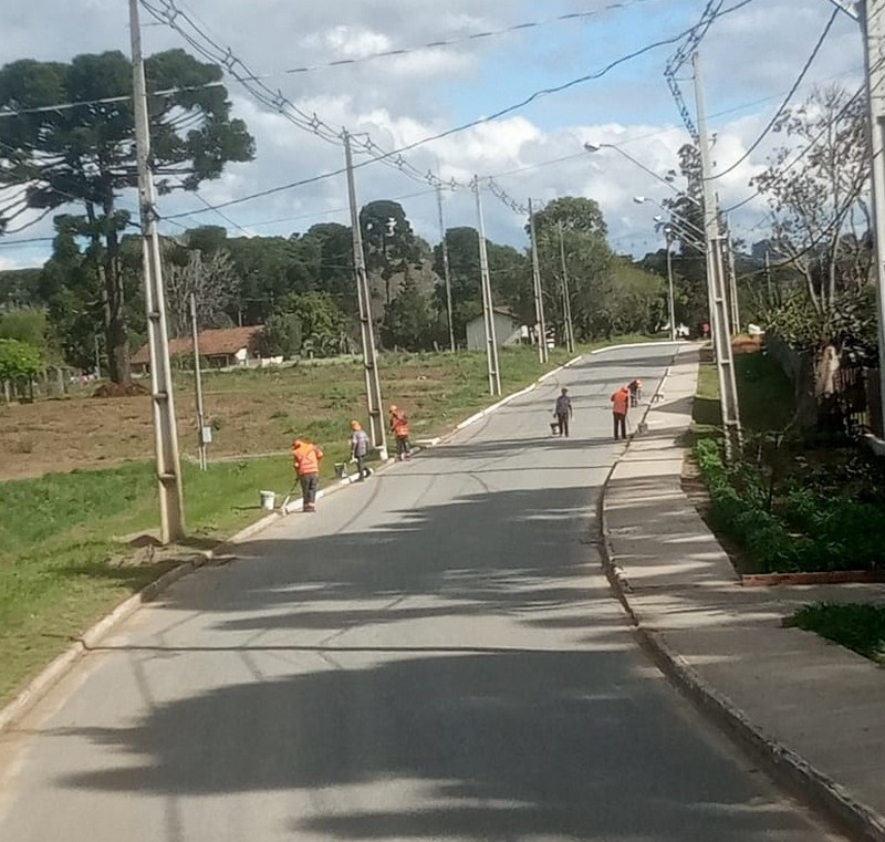 Foram realizados serviços de revitalização envolvendo a pintura de meio-fio e postes, além de corte e roçadas de mato ao longo das vias e limpezas nas calçadas.