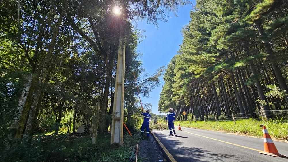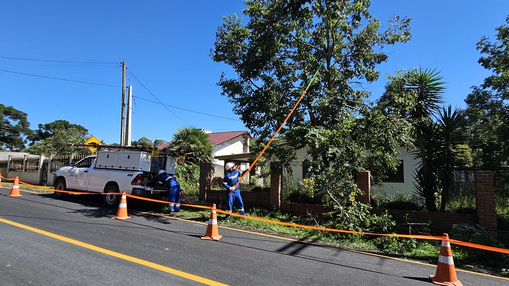 Em parceria com a Prefeitura de Rio Negro, a Copel Distribuição, por meio da Base de Serviço de Campo de Fazenda Rio Grande (BSCFRG), está realizando nesta quarta-feira um mutirão de podas, roçadas e aplicação de espaçadores na rede de baixa tensão.