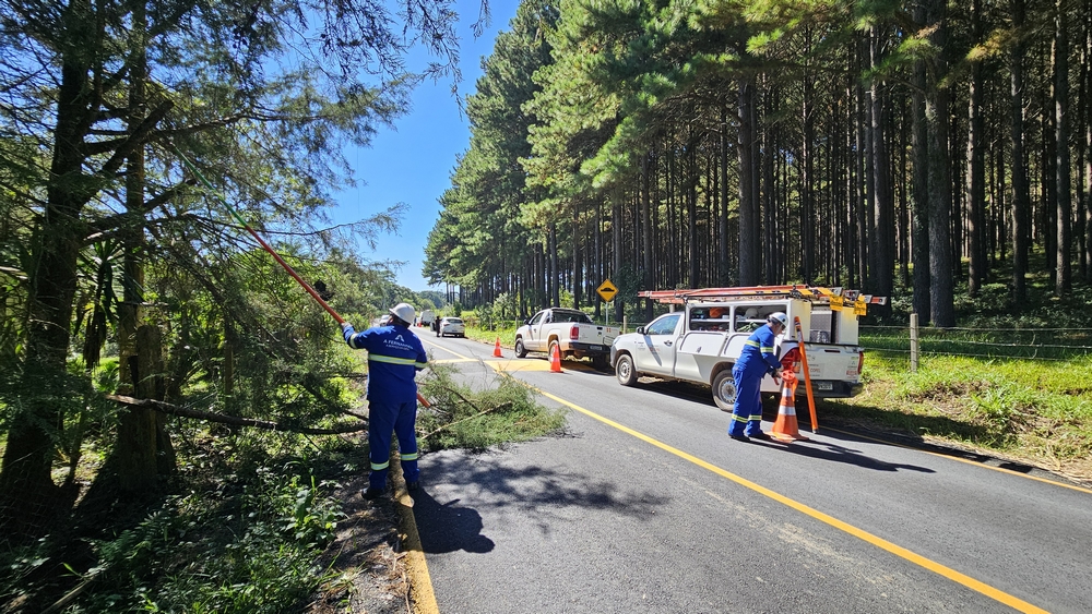 O mutirão reúne aproximadamente 40 pessoas em um esforço conjunto para garantir agilidade e eficiência nos serviços executados. As podas são realizadas pela equipe da Copel com conhecimento técnico e responsabilidade ambiental. A Prefeitura, por meio da Secretaria de Agricultura e Meio Ambiente e Secretaria de Obras, realiza as roçadas e o serviço de recolhimento dos resíduos.