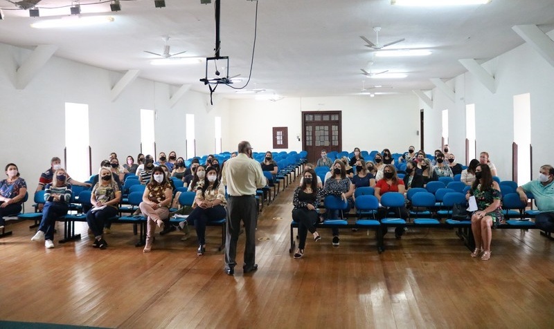 Após a abertura, a secretária de Educação, Vera Pfeffer Schelbauer, repassou as principais orientações à s equipes presentes quanto ao retorno à s aulas que inicia no dia 08 de fevereiro, ainda de forma online, e o planejamento do retorno presencial, de forma hÃbrida, que pode ser implantado no municÃpio a partir de março. Foi um momento importante para que a Secretaria e as equipes das unidades escolares alinhassem os procedimentos pedagógicos, técnicos e profissionais que nortearão o ano letivo de 2021.