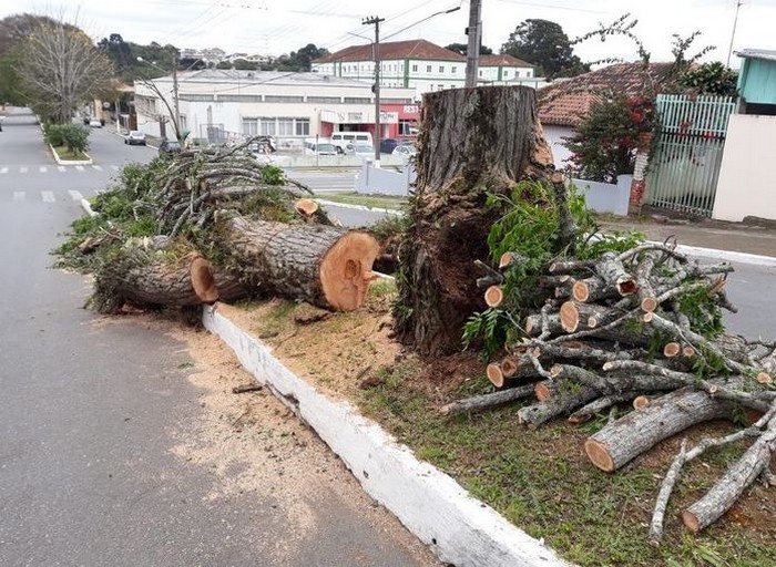 A retirada das árvores que eram cinquentenárias ocorreu no inÃcio deste mês, com a justificativa que estavam trazendo risco a população devido ao seu tamanho, o local onde estavam plantadas e o risco de queda.