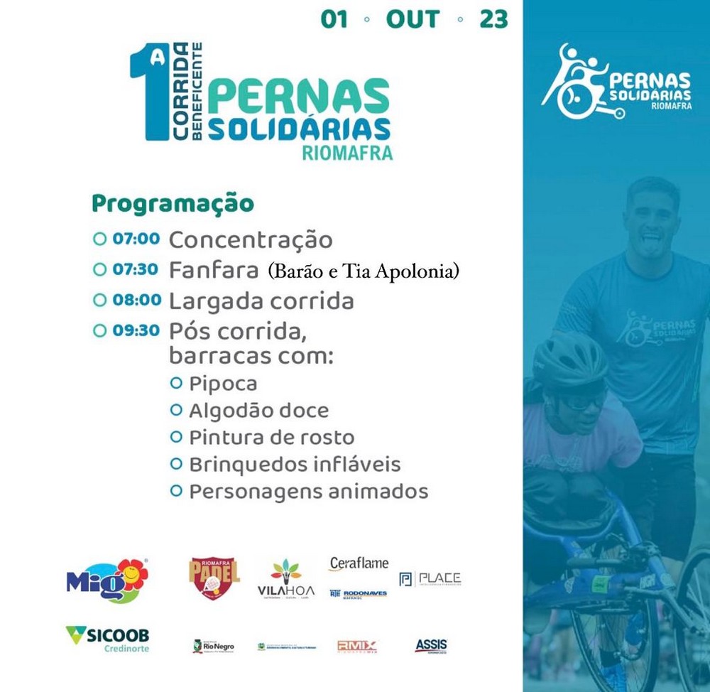 Domingo será realizada em Rio Negro a maior corrida inclusiva da região em celebração aos cinco anos do projeto “Pernas Solidárias Riomafra”. Faça parte dessa história! Serão dois percursos: 7,5 km e 15 km.