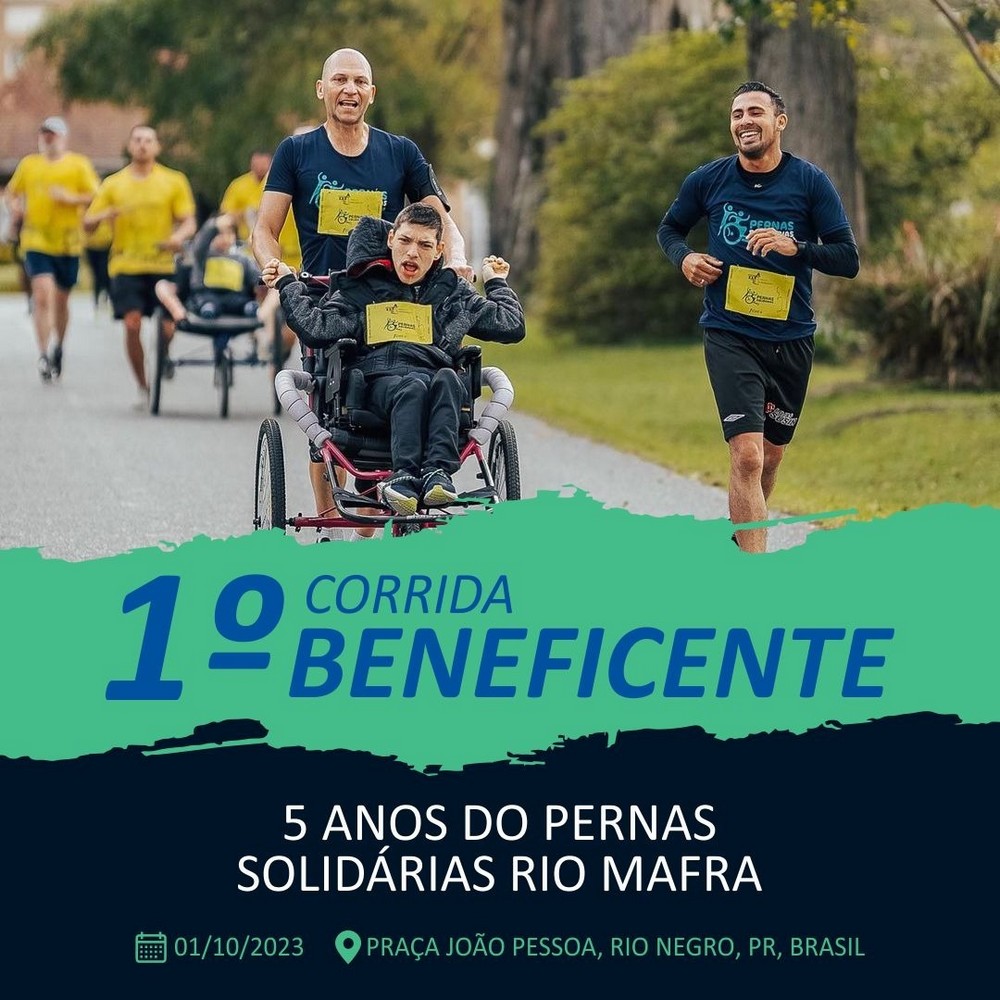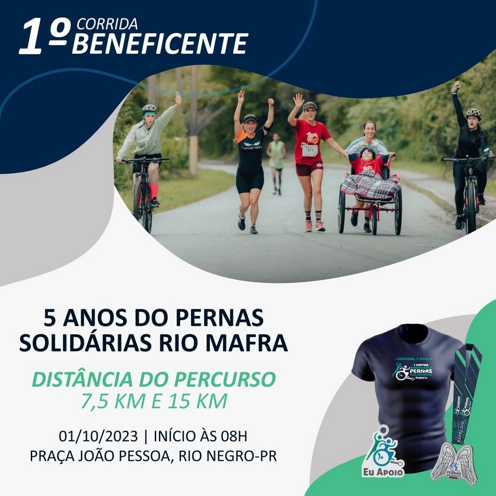 Domingo será realizada em Rio Negro a maior corrida inclusiva da região em celebração aos cinco anos do projeto “Pernas Solidárias Riomafra”. Faça parte dessa história! Serão dois percursos: 7,5 km e 15 km.