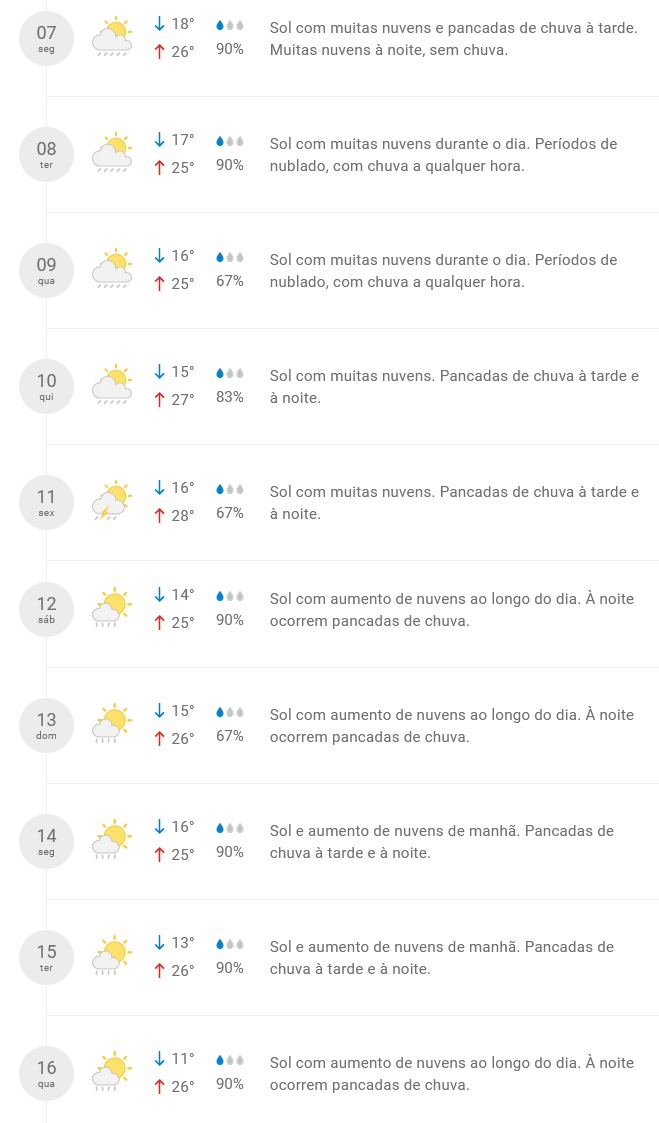 O calor deve permanecer na região durante esta semana. Confira abaixo a previsão do tempo para Rio Negro e Mafra.