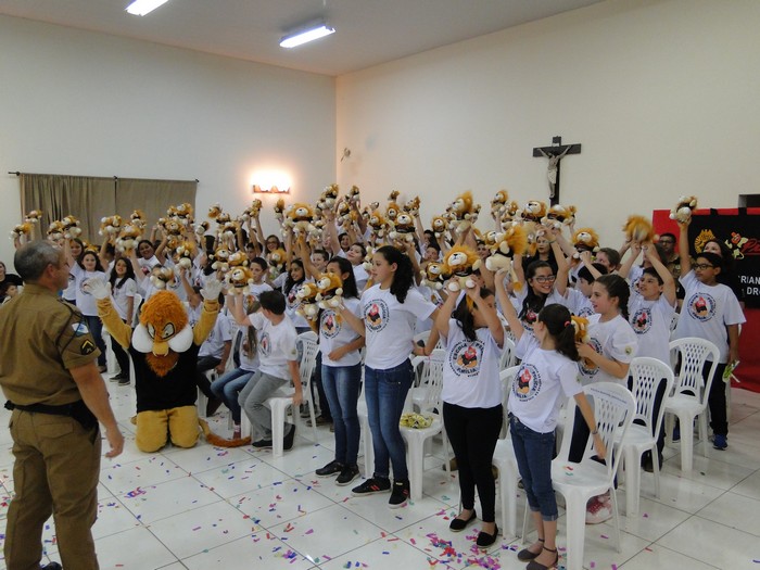 Na ocasião, os alunos dos quintos anos das escolas municipais, professoras e diretoras receberam o certificado de participação. Os alunos também conheceram o leão Dare, mascote do Proerd, que animou o público e os formandos, reforçando as lições desenvolvidas durante as aulas.