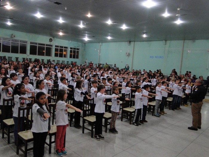 A noite da última quarta-feira (24) foi marcada pela formatura do Programa Educacional de Resistência às Drogas e à Violência (Proerd). Na ocasião 147 alunos firmaram o compromisso, perante familiares, autoridades e policiais Proerd de dizer NÃO às drogas e à violência.