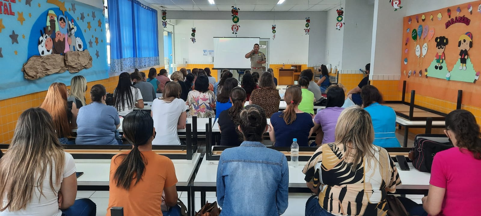 A palestra foi ministrada pelo 2° Sargento Maia do Corpo de Bombeiros de Rio Negro. A manhã foi produtiva e de intenso ganho de conhecimentos práticos e teóricos que vão possibilitar maior agilidade em casos de urgência. É o municÃpio sempre buscando parcerias em prol da qualidade no atendimento de nossas crianças.