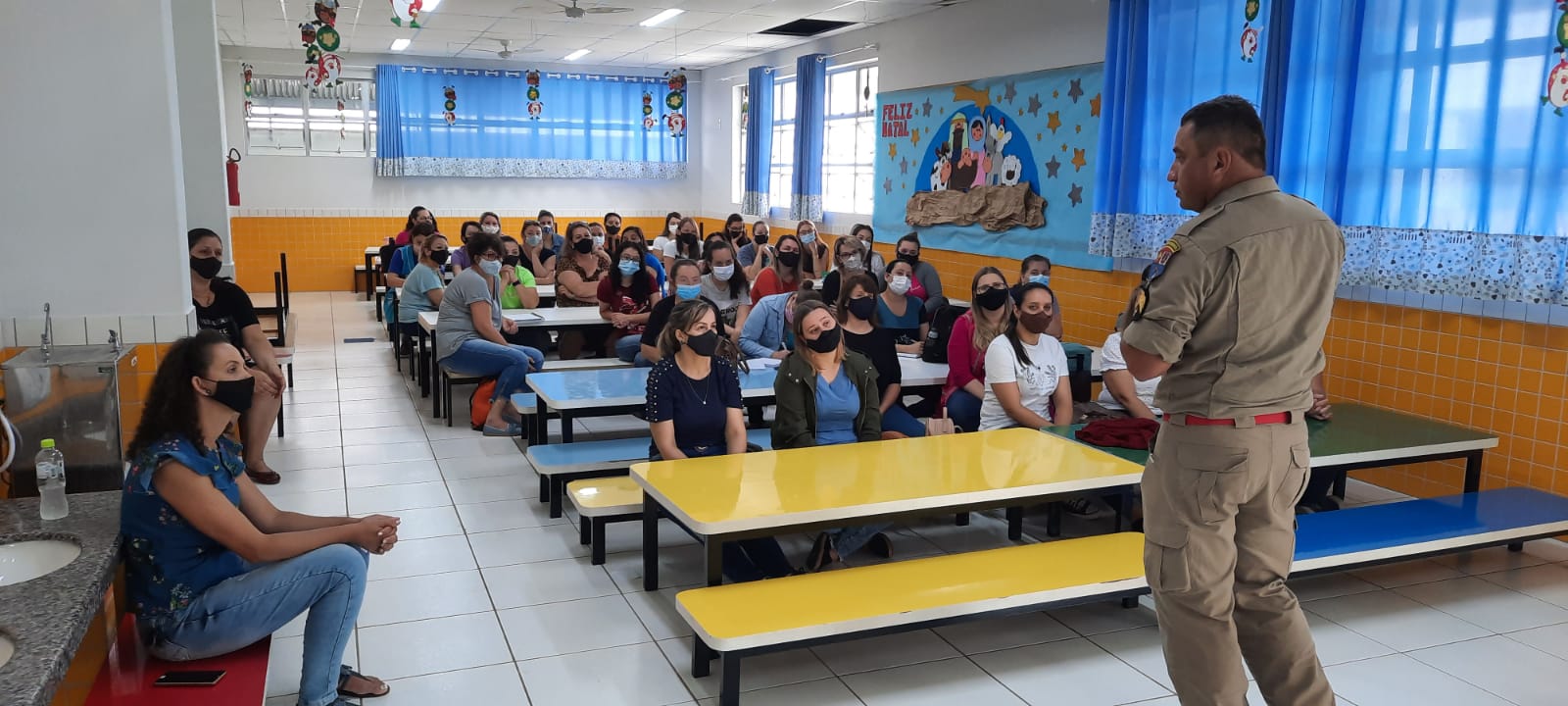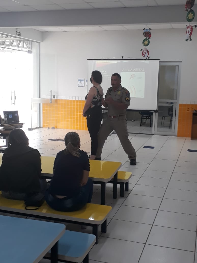 A palestra foi ministrada pelo 2° Sargento Maia do Corpo de Bombeiros de Rio Negro. A manhã foi produtiva e de intenso ganho de conhecimentos práticos e teóricos que vão possibilitar maior agilidade em casos de urgência. É o municÃpio sempre buscando parcerias em prol da qualidade no atendimento de nossas crianças.