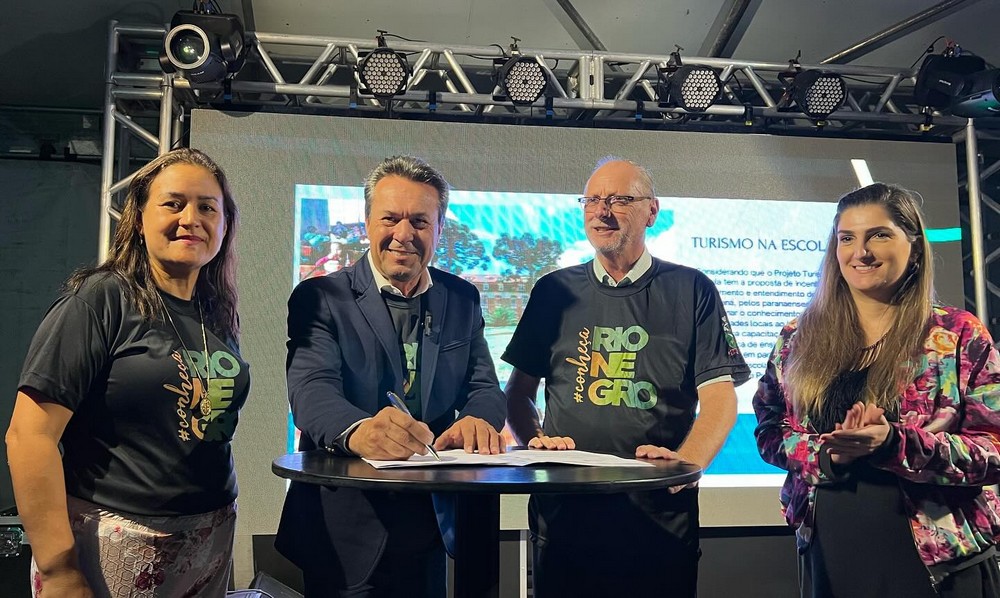 Nesta mesma noite ocorreu a assinatura do termo de cooperação entre o MunicÃpio de Rio Negro e o Estado do Paraná, a fim de estabelecer estratégias de execução em relação ao projeto Turismo na Escola, que visa incentivar o crescimento e entendimento do turismo no Paraná pelos paranaenses, além de disseminar o conhecimento e integrar as comunidades locais ao tema do turismo, atuando na capacitação de professores da rede pública de ensino.