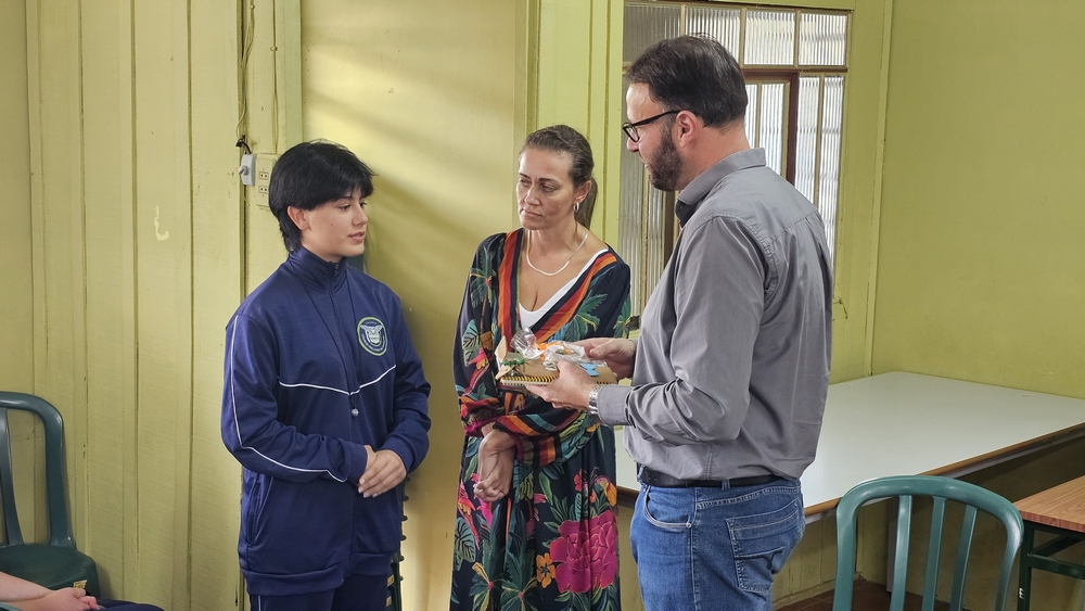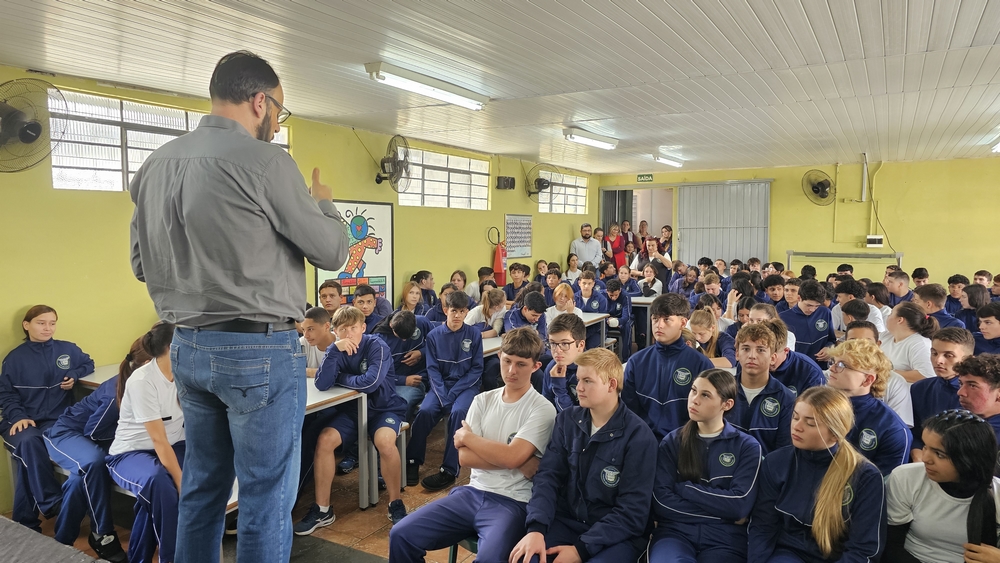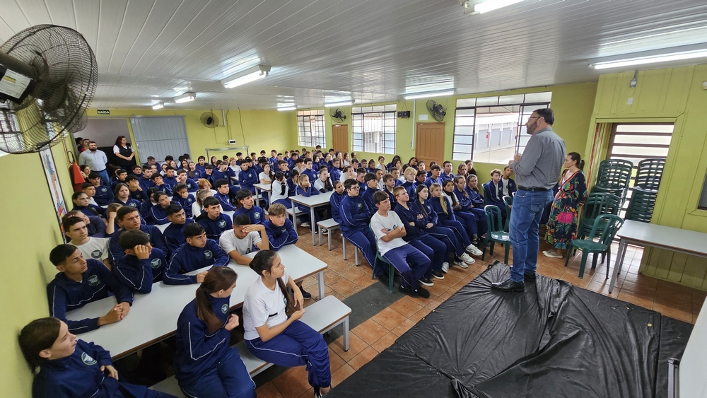 Na manhã desta sexta-feira o prefeito Alessandro Cristian von Linsingen foi recebido no colégio pela diretora geral Isabela Alves de Souza, pelos professores, servidores e alunos para a realização de uma apresentação. O prefeito passou aos alunos diversas informações sobre a sua experiência como professor, vereador e agora chefe do poder executivo de Rio Negro. Alessandro também deu vários exemplos sobre a atuação dos poderes legislativo e executivo e do funcionamento do sistema eleitoral. Ele também respondeu aos questionamentos dos estudantes.