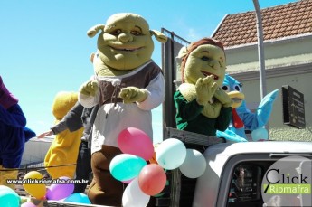 Para o desfile o projeto trouxe para a comunidade alguns dos personagens mais queridos e amados por crianças e adolescentes, entre eles o Shrek, Fiona, Galinha Pintadinha, Pintinho Amarelinho, Galo Carijó, Gru e os Minions, fazendo enorme sucesso de divulgação, atraindo olhares de curiosidade e encanto dos presentes.