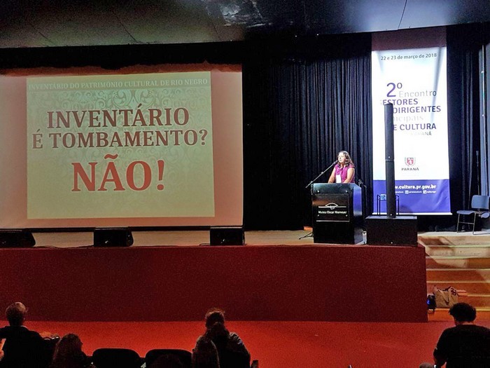 Durante a tarde foi a vez de Rio Negro, através dos representantes do departamento de Cultura, apresentarem o projeto “Inventário do Patrimônio Cultural dos Imóveis de Rio Negro”, o qual foi selecionado pela Secretaria de Estado da Cultura para apresentação.