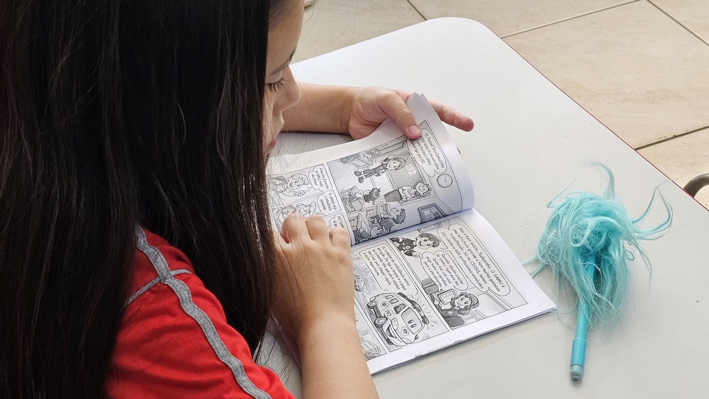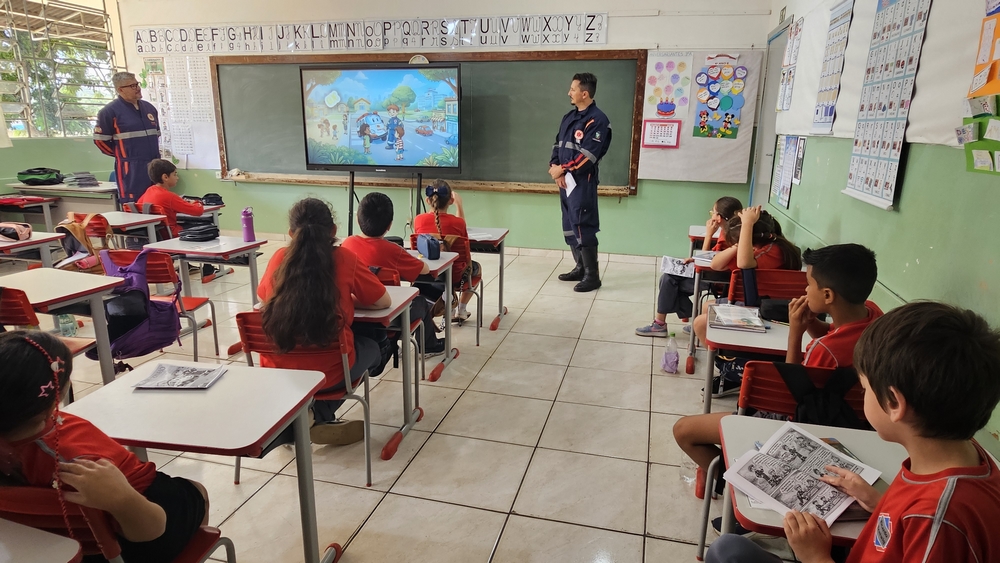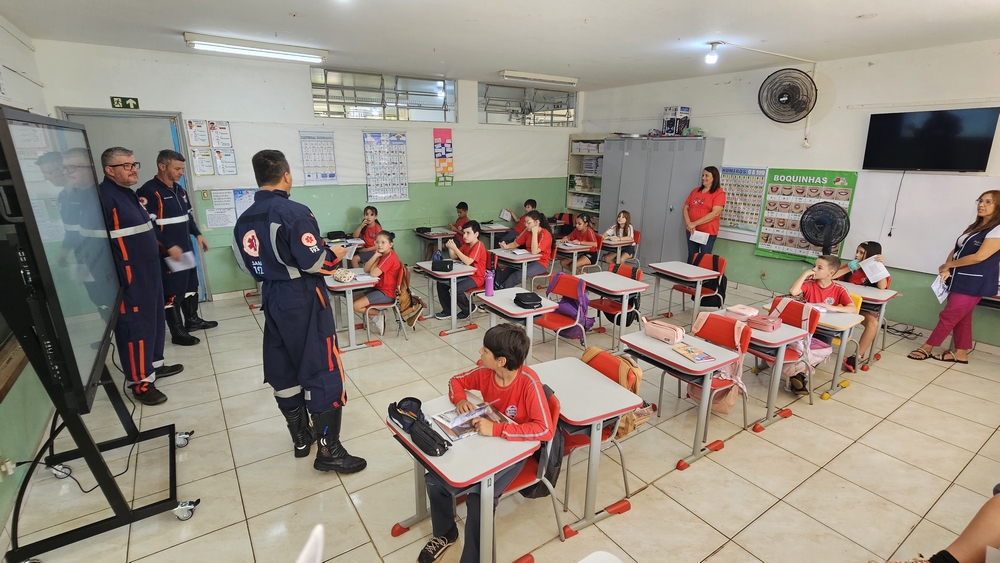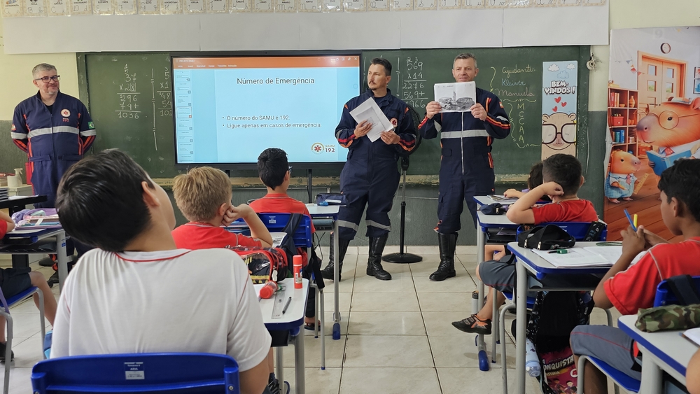 Uma revistinha impressa que foi preparada pela Secretaria Municipal de Saúde é entregue aos alunos. O material possui informações sobre como funciona o atendimento do SAMU, uma historinha em quadrinhos e atividades para as crianças, como desenhos para pintura e jogos. Durante a conversa com os alunos os profissionais também exibem uma animação que mostra a importância de não passar trotes.