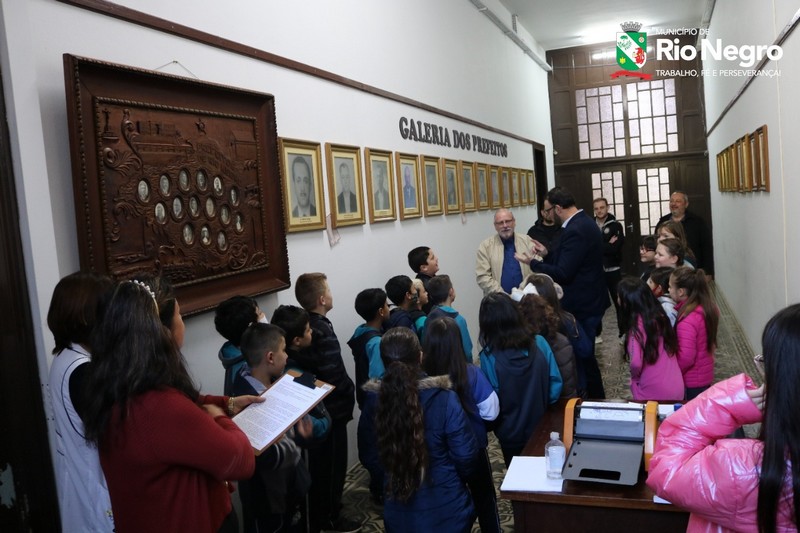 Além de conhecer toda a história do Museu, os alunos participaram de uma atividade de ‘caça ao tesouro’ e conheceram o gabinete do prefeito de Rio Negro, James Karson Valério, onde receberam livros de histórias infantis.