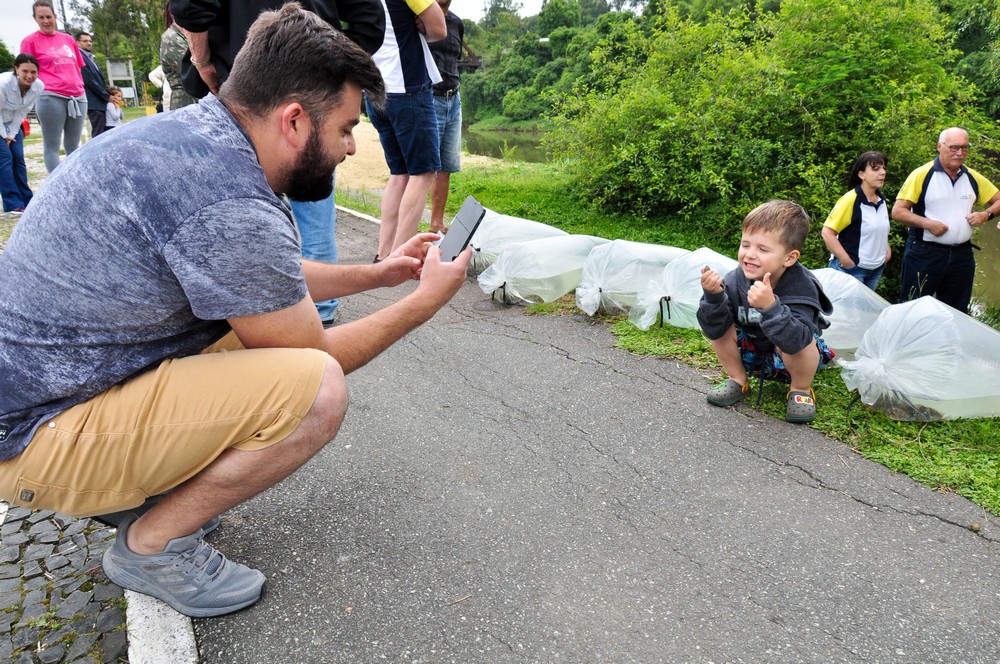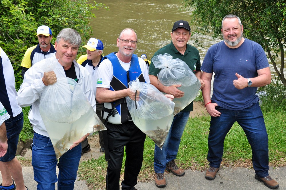Na manhã deste sábado ocorreu mais uma soltura de alevinos no rio Negro realizada por voluntários.