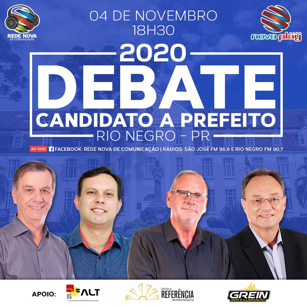 Na noite desta quarta-feira (04), os candidatos a prefeito de Rio Negro, Alceu Swarowski, Bruno Alves, Gari da Rádio e Professor James, participaram de um debate promovido pela Nova de Comunicação.