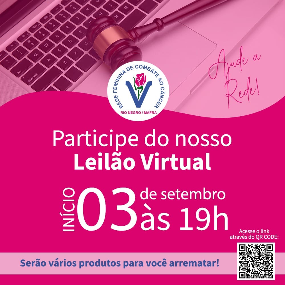 A Rede Feminina de Combate ao Câncer (RFCC) de Rio Negro e Mafra fará um leilão virtual no dia 03 de setembro (sexta-feira) às 19h. Participe e colabore com esta boa causa.