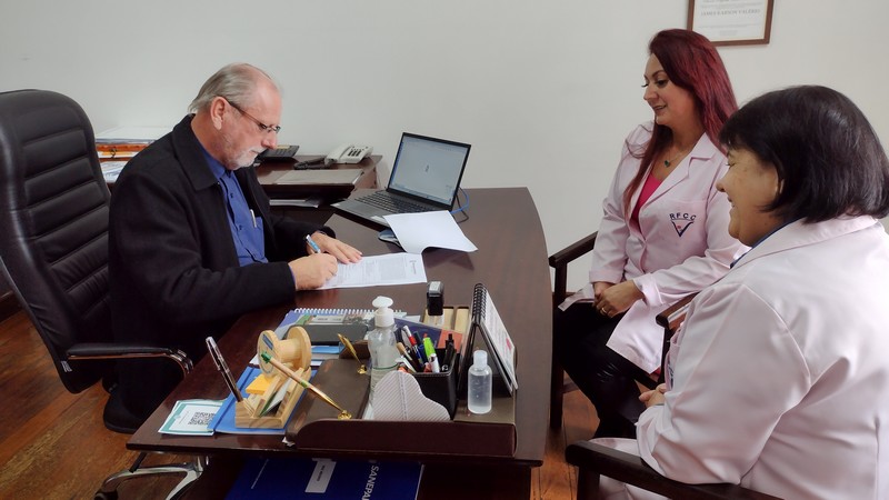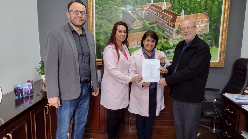 A presidente da entidade, Katia Aparecida Borges Saliba, e a assistente social Édina Santos, estiveram presentes no ato da assinatura no gabinete do prefeito.