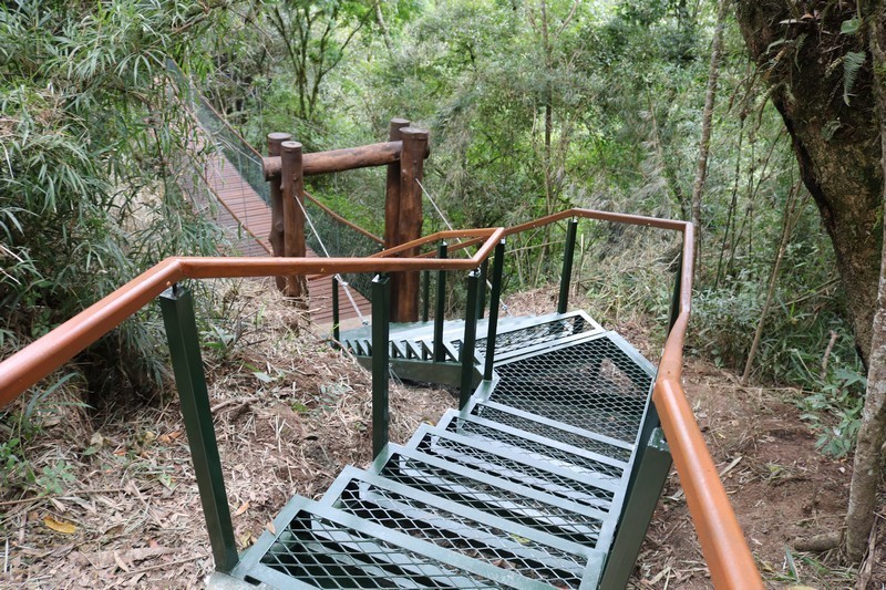 A ponte pênsil tem uma extensão de 37 metros, com 1,5 metros de largura. Sua inauguração é datada de 2004, desde então é um dos atrativos bastante procurados do parque.