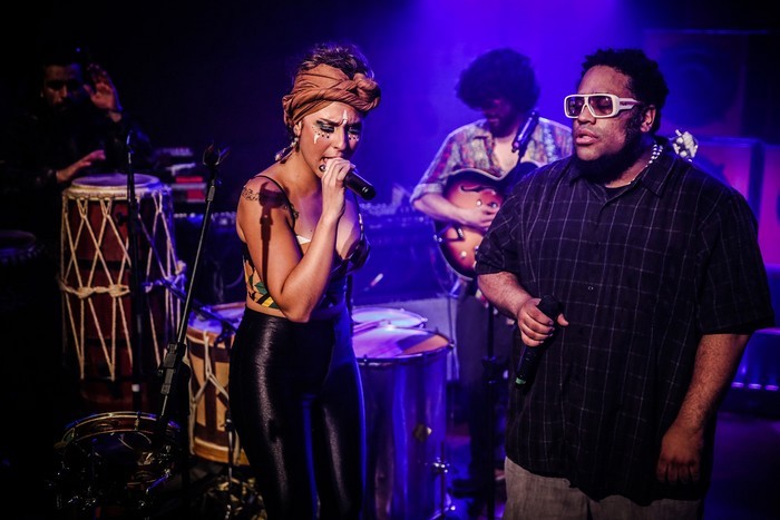 O show “Sete Bilhões de Vozes” é um verdadeiro espetáculo. Com ampla mescla de estilos, ritmos e gêneros presentes na miscigenação cultural dos grandes centros urbanos e das letras carregadas de crítica social, a apresentação musical é acompanhada por projeções de vídeo mapping, inovadora técnica que ajuda a criar ilusões óticas, além de um design cênico permeado por influências étnicas, pela arte de rua e pela cultura popular.