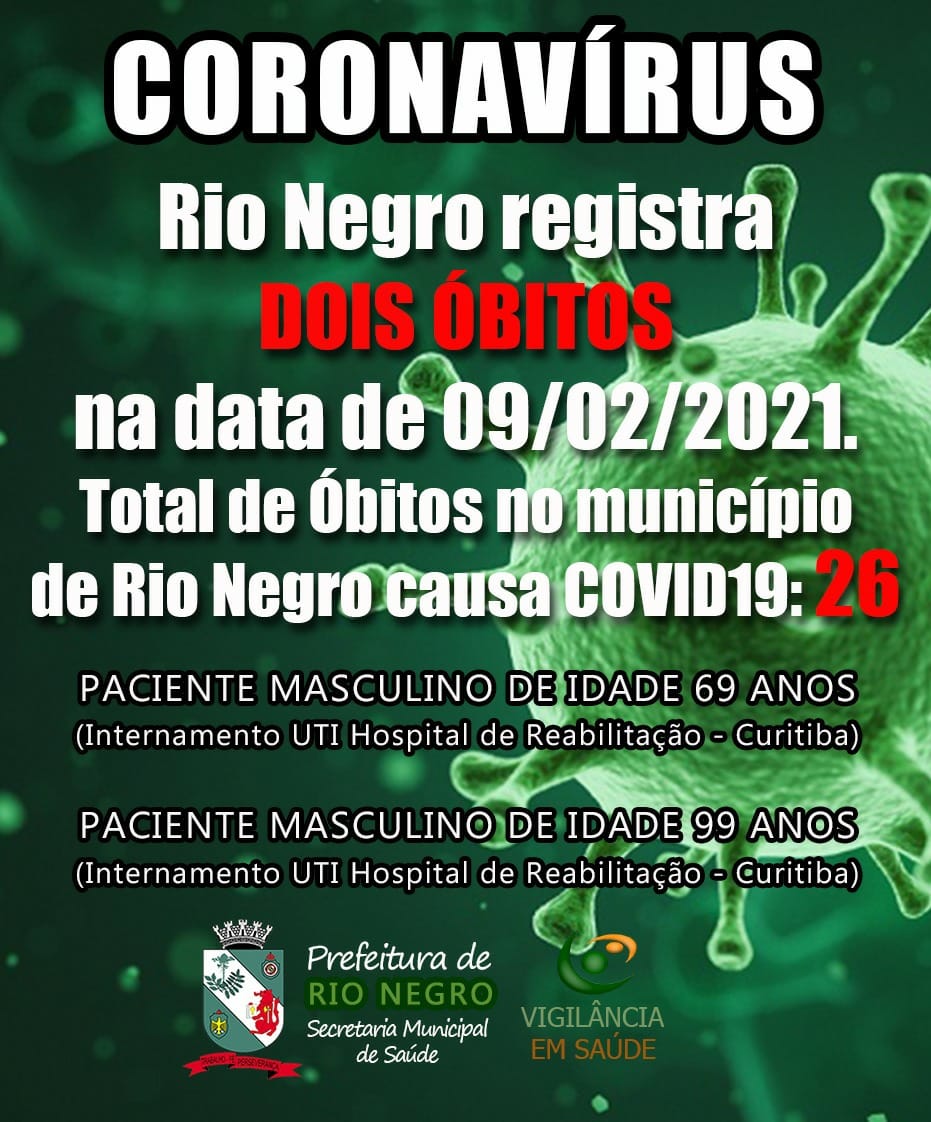 Rio Negro confirmou nesta terça-feira (09) mais dois óbitos por Covid-19, chegando a 26 mortes.