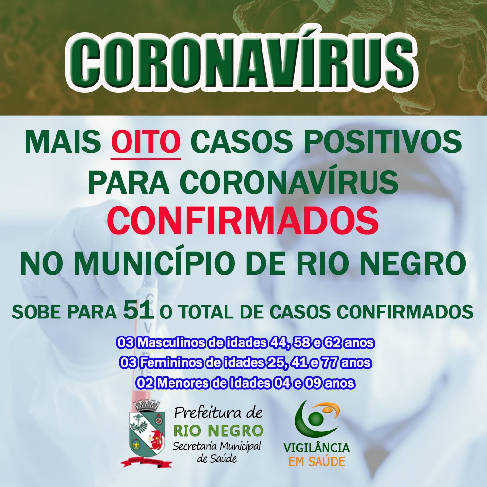Rio Negro chegou ao 51º caso positivo de Covid-19 nesta terça-feira. Foram oito novas confirmações.