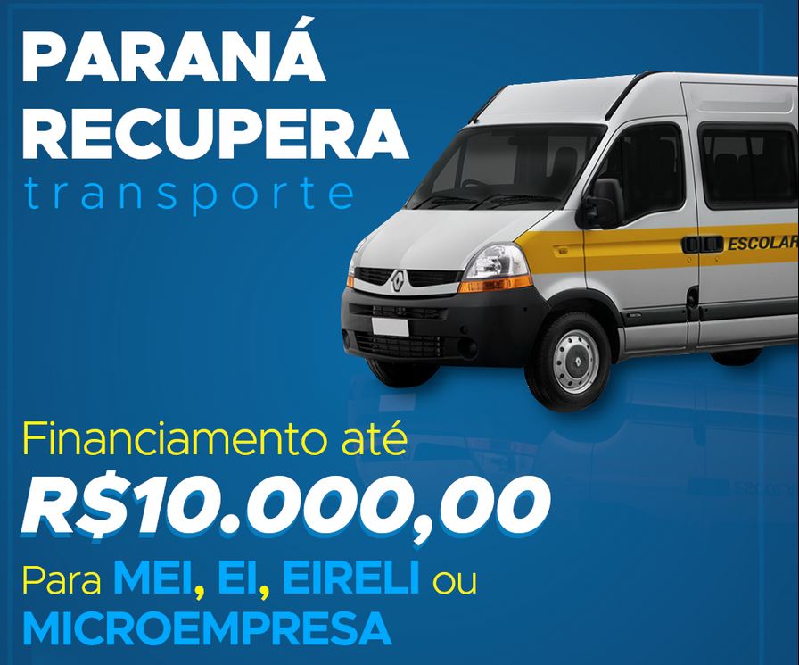 Empreendedores informais, MEI´s, Micro e Pequenas Empresas do ramo de transporte de passageiros por fretamento de Rio Negro podem participar do Paraná Recupera Transporte, programa de fomento que auxilia na obtenção de crédito de até R$ 20 mil.