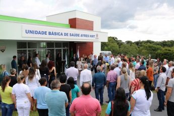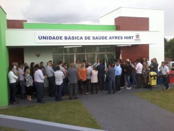 No perÃodo da tarde foi a vez da comunidade do Bairro Alto receber, segundo a Prefeitura, a maior Unidade Básica de Saúde do municÃpio, UBS Ayres Hirt. A nova unidade possui várias salas de atendimento e é equipada para executar o atendimento básico à saúde (consultas, avaliações clÃnicas, acompanhamento de peso e outros procedimentos).