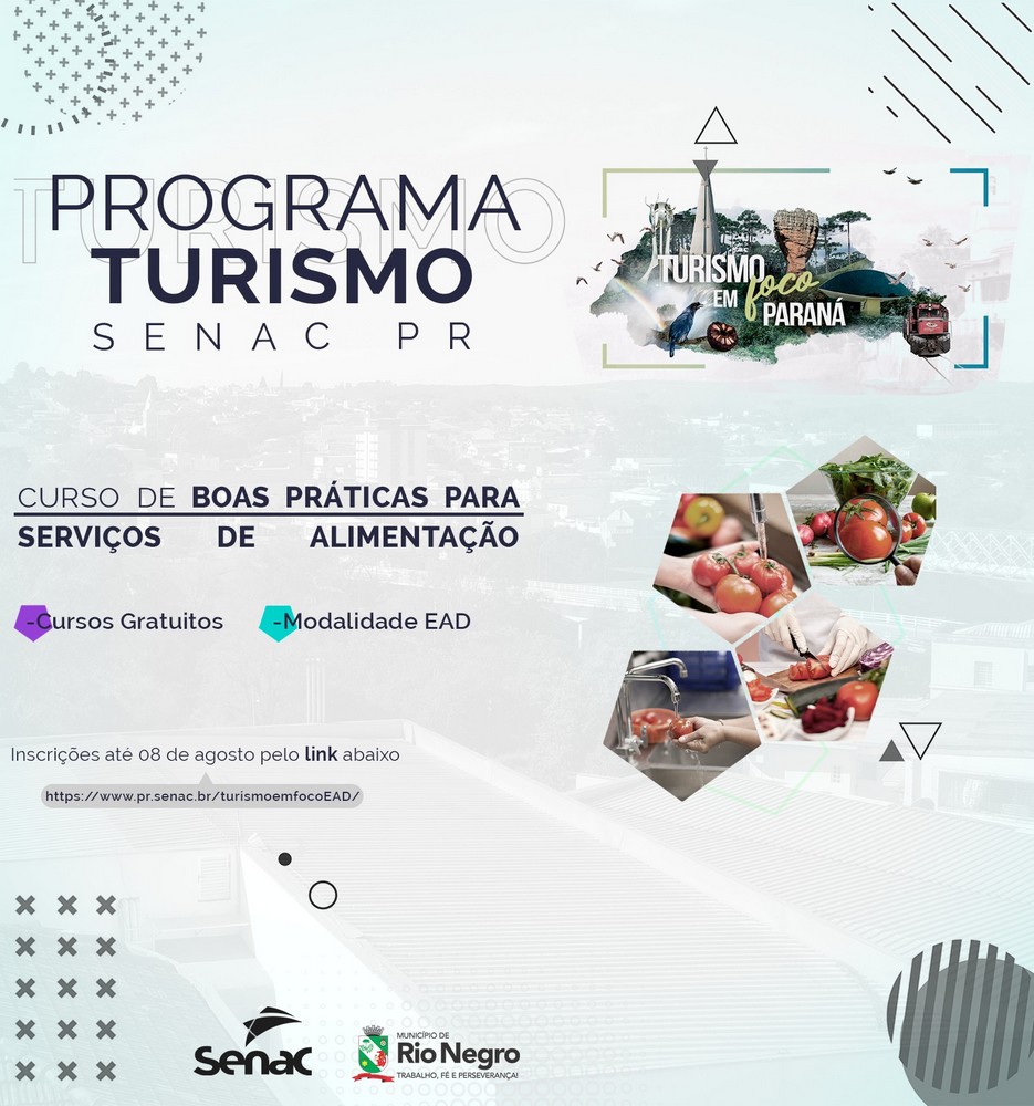As inscrições são gratuitas e podem ser feitas até o dia 08 de agosto, pelo link https://www.pr.senac.br/turismoemfocoEAD/