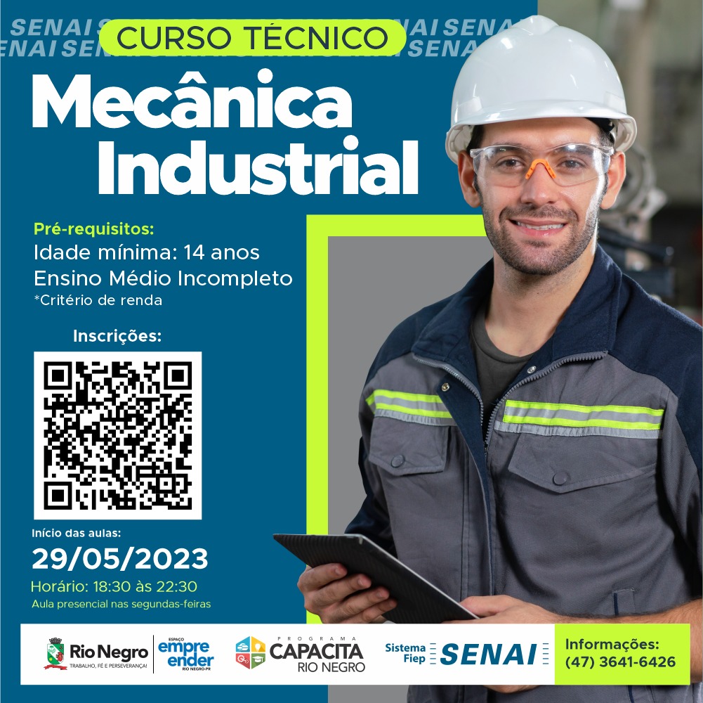 As aulas ocorrerão no Senai Rio Negro. A formação é técnica semipresencial com duração regular de dezoito meses.