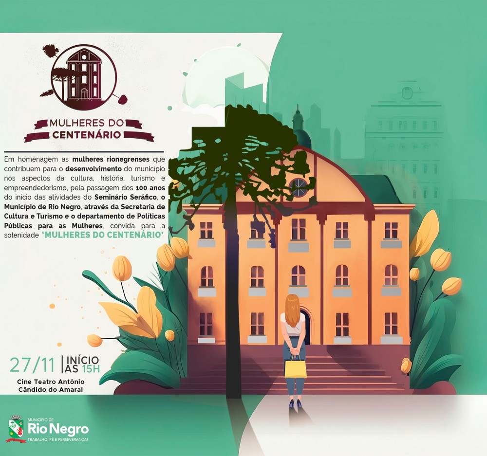 A Prefeitura de Rio Negro, através da Secretaria de Cultura e Turismo e o departamento de Políticas Públicas para as Mulheres, realizará na próxima segunda-feira às 15h a homenagem “Mulheres do Centenário”. A população está convidada para prestigiar o evento.