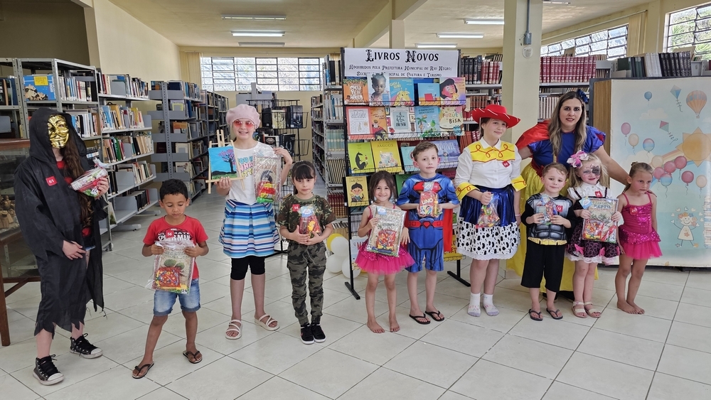 A ação “Dia das Crianças da Biblioteca” foi organizada pela Secretaria Municipal de Cultura e Turismo com o apoio da Secretaria Municipal de Esportes e Lazer, do Instituto Riomafrense do Bem Estar do Menor (IRBEM) e do Sesc Rio Negro.