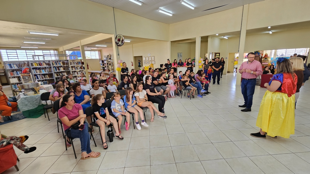 O prefeito Alessandro Cristian von Linsingen, juntamente com a coordenadora da biblioteca, Viviane Torres Pereira, o secretário de cultura e turismo, Luiz Felipe Custódio de Oliveira, e a vereadora Isabel Cristina Grossl, deu as boas-vindas às crianças e seus pais e responsáveis.