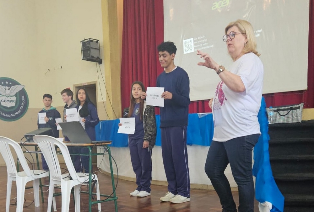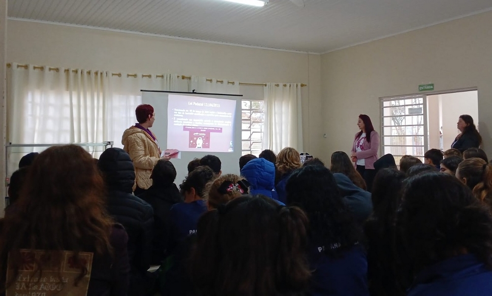 O ciclo da violência doméstica e familiar e as caracterÃsticas de relacionamentos abusivos são exemplos de temas que estão sendo abordados pelos profissionais. Materiais gráficos informativos também foram distribuÃdos aos alunos para que eles propaguem o conhecimento aos familiares e amigos.