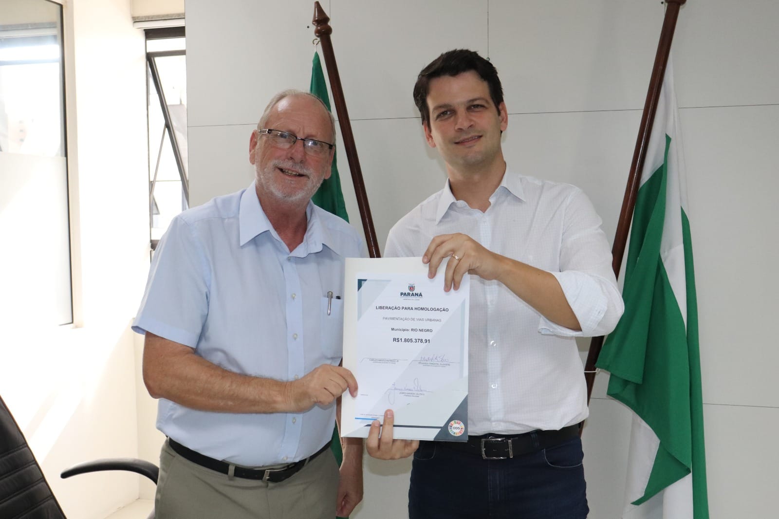 O municÃpio de Rio Negro recebeu nesta quarta-feira (05), a liberação para licitação de um recurso para a pavimentação asfáltica de vias urbanas no valor de R$ 1,8 milhão.