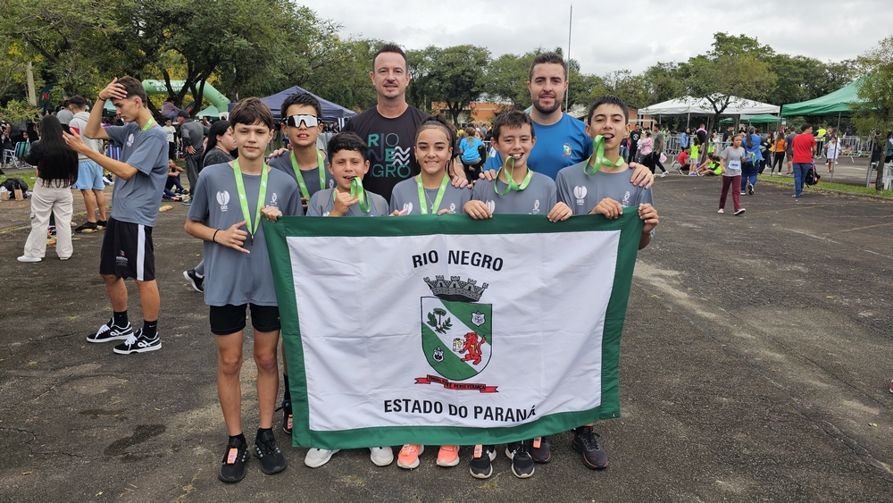 O esporte de Rio Negro também se destaca em competições realizadas em outras cidades. Neste domingo medalhas foram conquistadas durante a 1ª etapa do Circuito Infantil de Corridas de Rua 2025, que foi realizada na Universidade Tecnológica Federal do Paraná – Campus NeoVille, na Cidade Industrial de Curitiba. O evento foi promovido pela Secretaria do Esporte, Lazer e Juventude (SMELJ) da capital paranaense com os objetivos de difundir na comunidade a prática da atividade física e favorecer o intercâmbio esportivo e cultural.