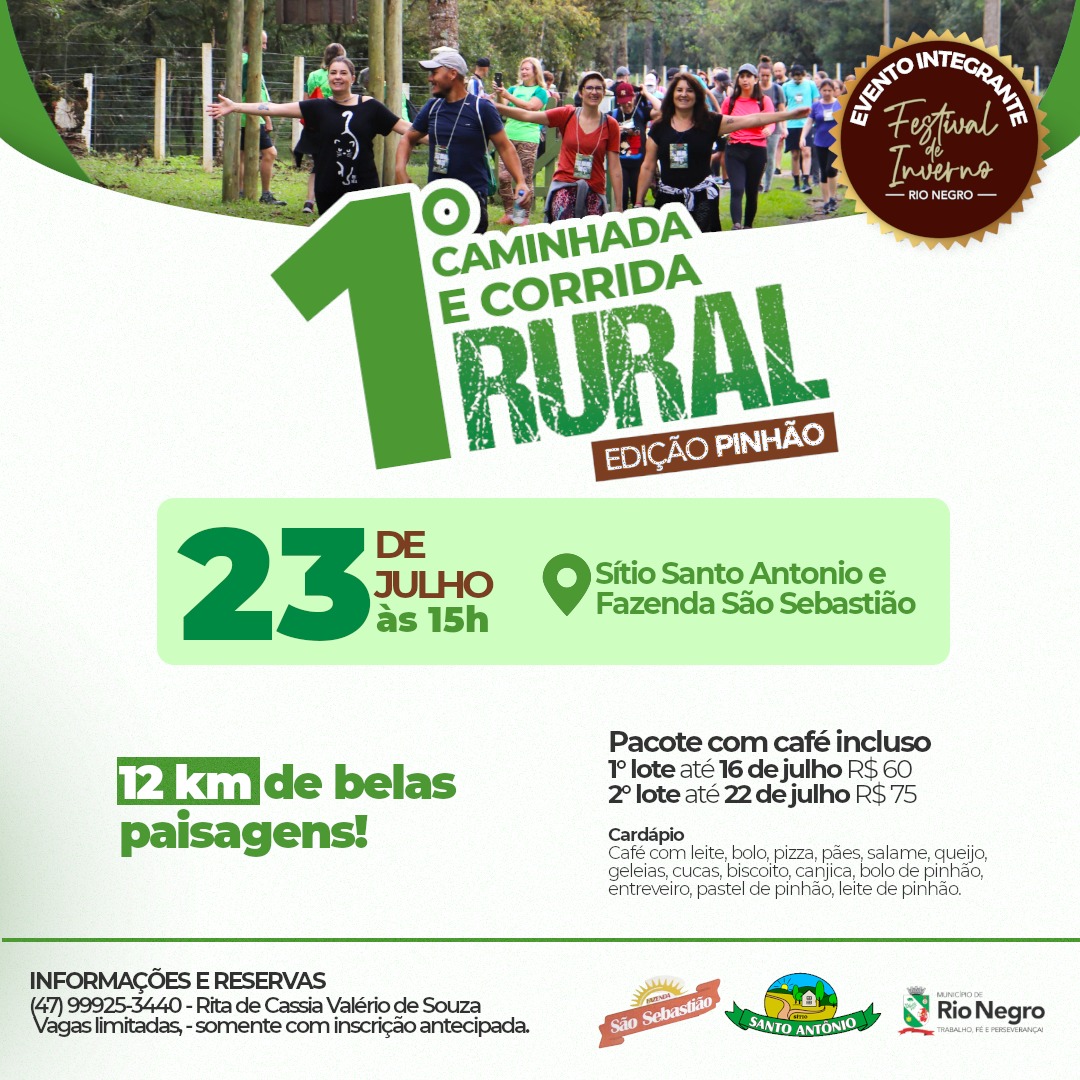 A 1ª Caminhada e Corrida Rural integra a programação de eventos do 1º Festival Gastronômico de Inverno de Rio Negro.