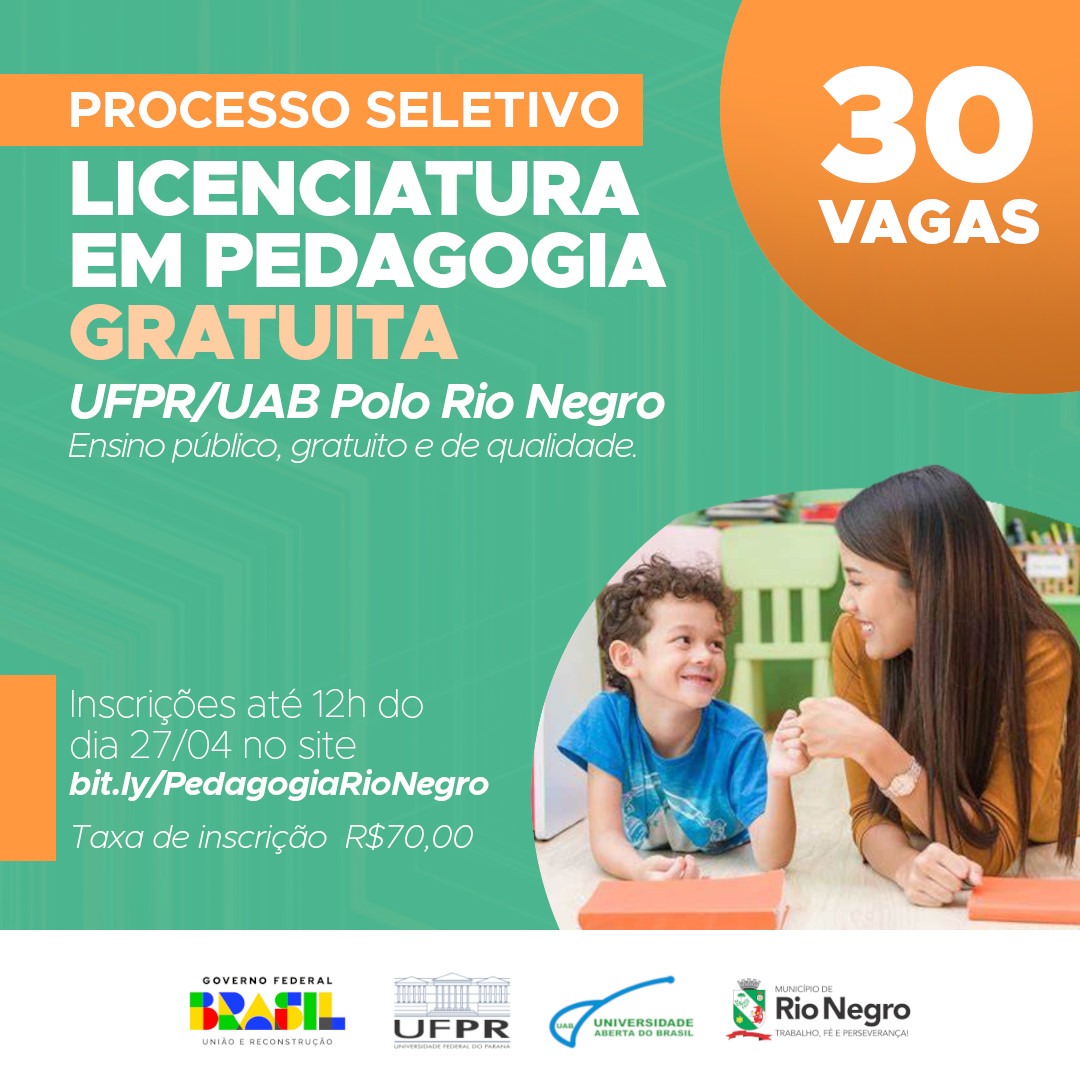 Estão abertas as inscrições para o curso de Pedagogia pela Universidade Federal do Paraná (UFPR). Elas serão recebidas até às 12h do dia 27/04/2023. O pagamento da taxa de inscrição deverá ser efetivado até o dia 28/04 ao custo de R$ 70,00.
