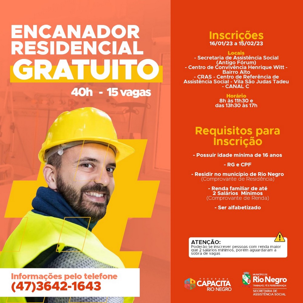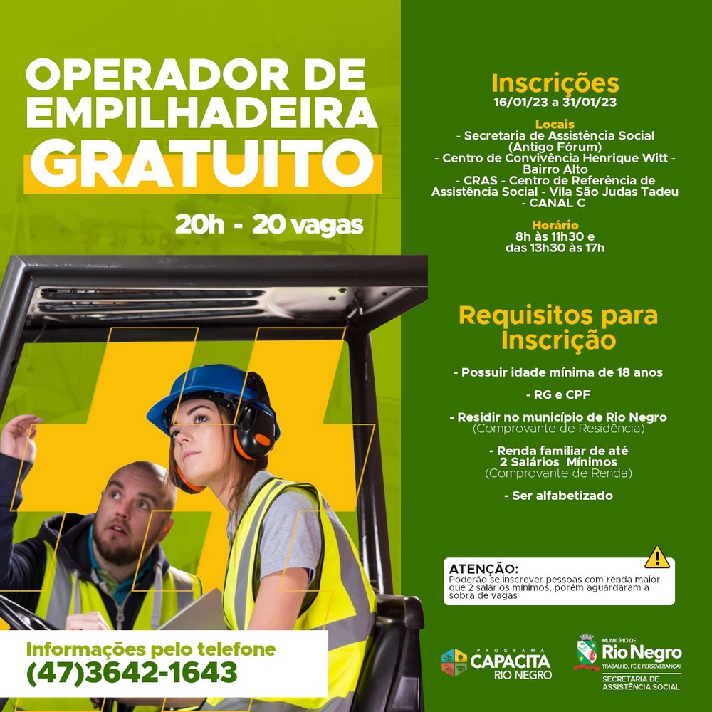 A Prefeitura de Rio Negro, através da Secretaria de Assistência Social e Programa Capacita Rio Negro, disponibilizará cursos gratuitos para a população. O objetivo é tornar a qualificação profissional como forma de preparar jovens e adultos para o mercado de trabalho.