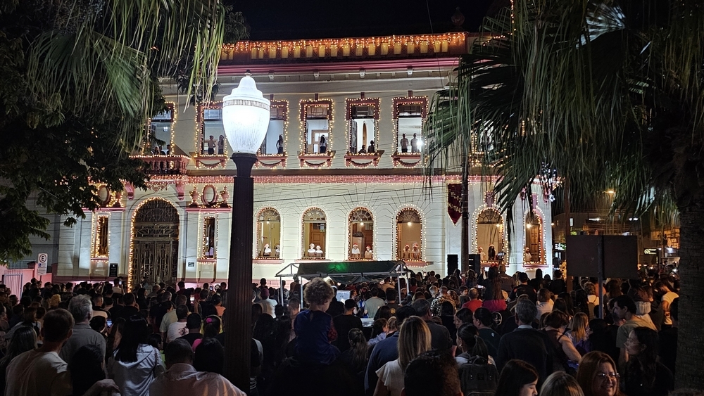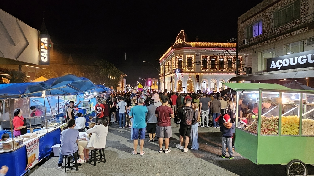 Sábado (dia 06): à s 18h30 terá inÃcio a passeata Nicolaus Kinder em frente ao prédio da antiga Prefeitura. A passeata seguirá até o prédio do antigo Fórum, que a partir das 19h receberá a cantata natalina. Às 20h30 terá apresentação musical com Fábio Paqueira. O evento também terá projeção mapeada, show pirotécnico e feira gastronômica.