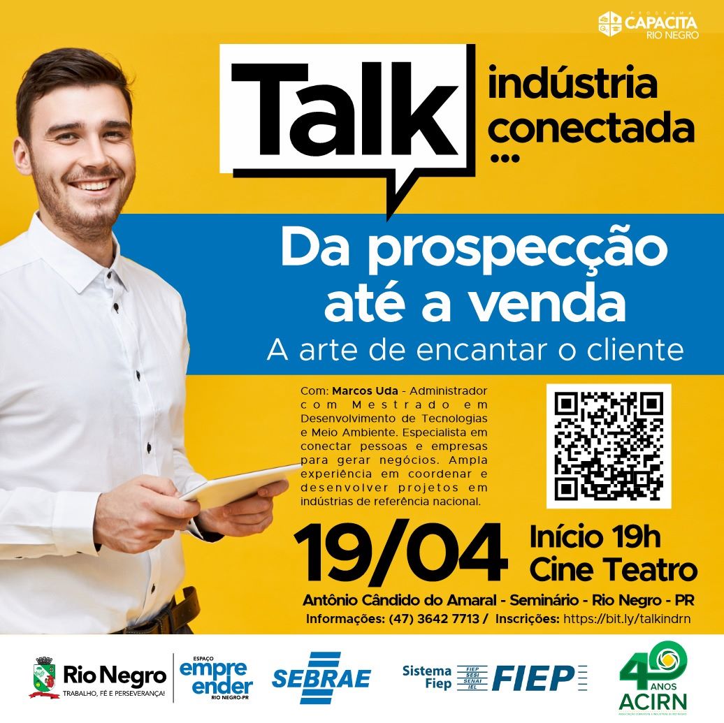No dia 19 de abril o Espaço Empreender da Prefeitura de Rio Negro realizará o Talk Indústria Conectada – Da prospecção até a venda – A arte de encantar o cliente.