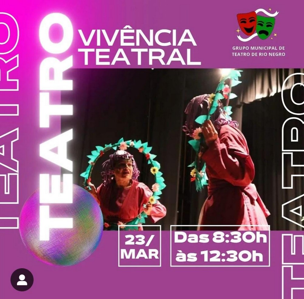 A vivência será ministrada por Henrique Gaio, proponente do projeto, agente cultural e coordenador do Grupo Municipal de Teatro de Rio Negro. A ação acontecerá no Cine Teatro Antônio Cândido do Amaral entre 8h30 e 12h30.